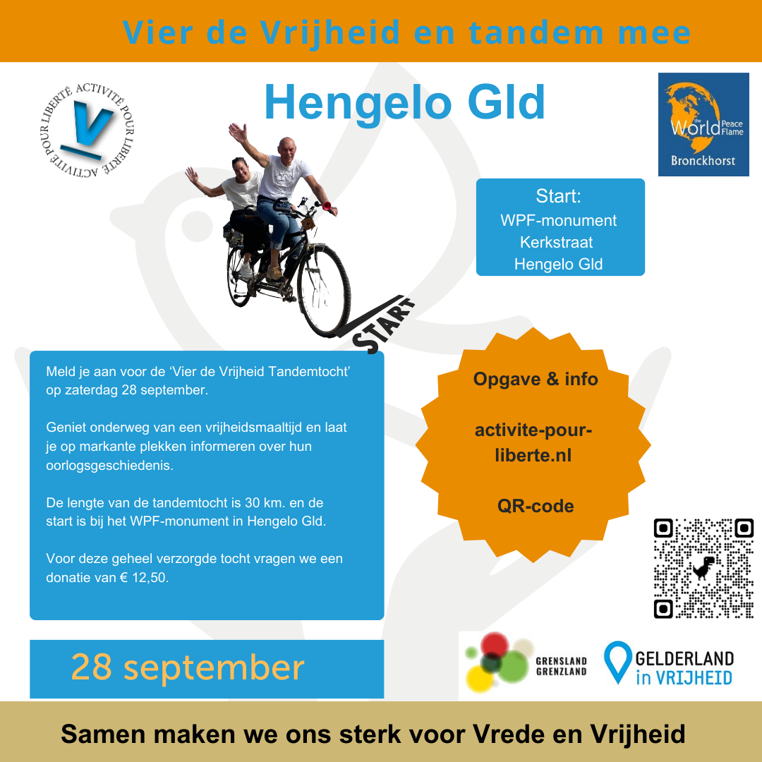 Op zaterdag 28 september vond de ‘Vier de Vrijheid Tandemtocht’ plaats onder de naam ‘Tandemer pour Liberté’. De organisatie was in handen van Activité pour Liberté en WPF-Bronckhorst.
